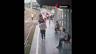 Train stops inches from hitting a young woman. She has no idea exactly how lucky she is to make it home that day.