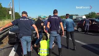 On Thursday, June 16 2022, Extinction Rebellion protestors blocking traffic on Grande Raccordo Anulare, Rome's main ring road, were seen being dragged away to the side by angry drivers, however, the protestors would quickly return to their positions to again block traffic before most of the cars could get by.