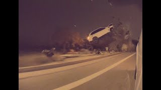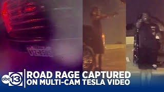 Sunday, June 4, 2023 (Fullerton, California). A man was followed home by men in a black car after which two men exit the car approach him just inside the garage where he had parked. They pepper spray him but are quickly chased off by the man and two landscapers working at the home at the time. The footage was caught by a home surveilance camera and the man's Tesla's camera.