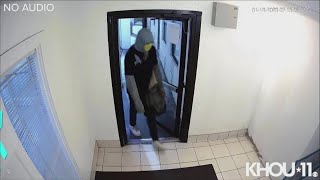 A man pulls into a Houston, Texas car dealership parking lot in a Mercedes Benz with a temporary license plate and exits the vehicle with another person remaining behind in the car. He then asks to do a test-drive and follows an employee into the building. Once they are both inside, he starts to pull out a firearm under his sweater, but the employee simultaneously does the same and the man quickly turns back around and finds the exit with a nervous grin on his face and looking back to make sure he wasn't about to get shot. He is then seen sprinting away from the dealership on foot, leaving the Benz and his accomplice behind.