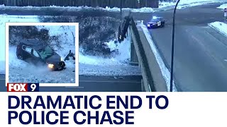 Suspect's car flips down overpass during police chase