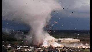 Friday April 29 2022. Man driving around filming powerful tornado that is said to have destroyed or damaged about a thousand homes.